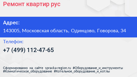 Ремонт-квартир.рус по адресу 143005, Московская область, Одинцово, Говорова, 34 в дальнейшем Организация, размещена в следующих категориях: