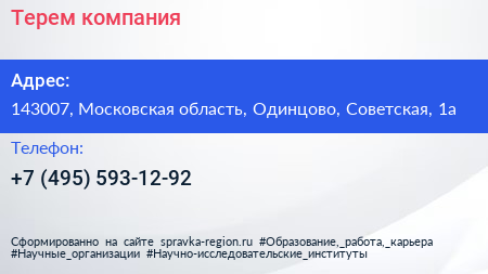 Для связи с организацией воспользуйтесь номером телефона: +7 (495) 593-12-92. Пн: c 09:00-18:00, Вт: c 09:00-18:00, Ср: c 09:00-18:00, Чт: c 09:00-18:00, Пт: c 09:00-18:00, Сб: выходной, Вс: выходной, вы можете обратиться в эту организацию.