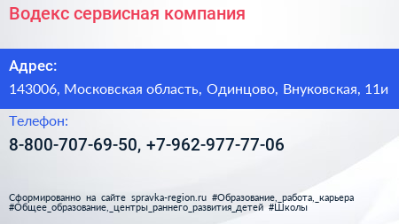 Адрес: Московская область, Одинцово, Садовая, 28а