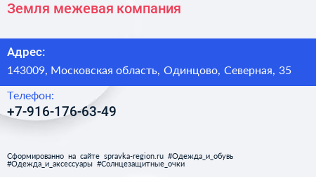 Земля, межевая компания по адресу 143009, Московская область, Одинцово, Северная, 35 в дальнейшем Организация, размещена в следующих категориях: