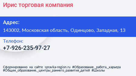 Ирис, торговая компания по адресу 143002, Московская область, Одинцово, Западная, 13 в дальнейшем Организация, размещена в следующих категориях: