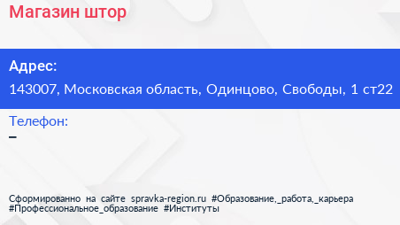 Магазин штор по адресу 143007, Московская область, Одинцово, Свободы, 1 ст22 в дальнейшем Организация, размещена в следующих категориях: