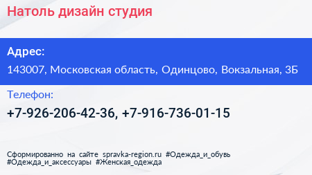 Натоль, дизайн-студия по адресу 143007, Московская область, Одинцово, Вокзальная, 3Б в дальнейшем Организация, размещена в следующих категориях: