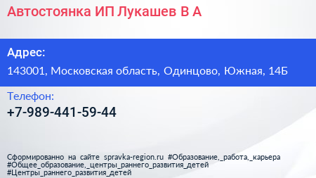 Автостоянка, ИП Лукашев В.А. по адресу 143001, Московская область, Одинцово, Южная, 14Б в дальнейшем Организация, размещена в следующих категориях: