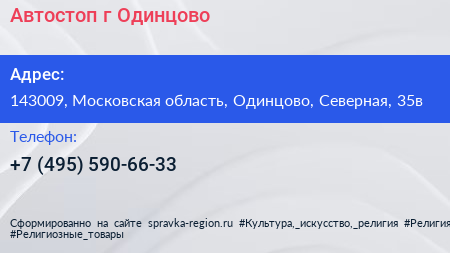 Автостоп, г. Одинцово по адресу 143009, Московская область, Одинцово, Северная, 35в в дальнейшем Организация, размещена в следующих категориях:
