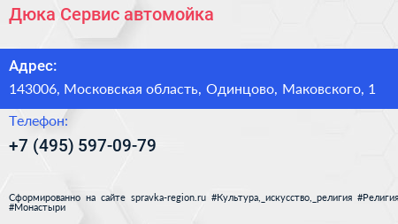 Дюка Сервис, автомойка по адресу 143006, Московская область, Одинцово, Маковского, 1 в дальнейшем Организация, размещена в следующих категориях: