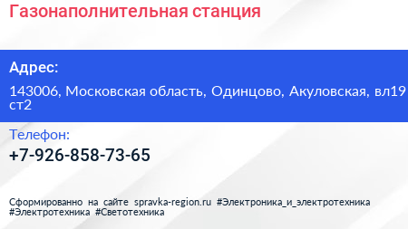 Газонаполнительная станция по адресу 143006, Московская область, Одинцово, Акуловская, вл19 ст2 в дальнейшем Организация, размещена в следующих категориях: