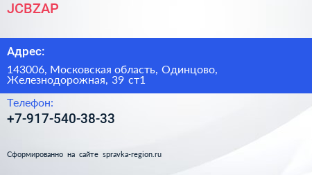 JCBZAP по адресу 143006, Московская область, Одинцово, Железнодорожная, 39 ст1 в дальнейшем Организация, размещена в следующих категориях: