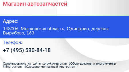 Магазин автозапчастей по адресу 143006, Московская область, Одинцово, деревня Вырубово, 163 в дальнейшем Организация, размещена в следующих категориях: