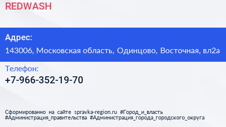REDWASH по адресу 143006, Московская область, Одинцово, Восточная, вл2а в дальнейшем Организация, размещена в следующих категориях: