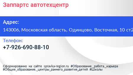 Заппартс, автотехцентр по адресу 143006, Московская область, Одинцово, Восточная, 10 ст2 в дальнейшем Организация, размещена в следующих категориях: