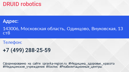 DRUID robotics по адресу 143006, Московская область, Одинцово, Внуковская, 13 ст8 в дальнейшем Организация, размещена в следующих категориях: