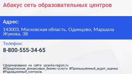 Абакус, сеть образовательных центров по адресу 143003, Московская область, Одинцово, Маршала Жукова, 38 в дальнейшем Организация, размещена в следующих категориях: