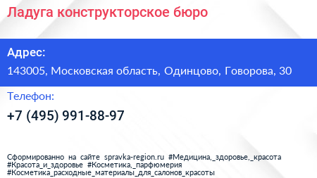 Ладуга, конструкторское бюро по адресу 143005, Московская область, Одинцово, Говорова, 30 в дальнейшем Организация, размещена в следующих категориях: