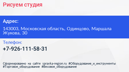 Рисуем, студия по адресу 143003, Московская область, Одинцово, Маршала Жукова, 30 в дальнейшем Организация, размещена в следующих категориях: