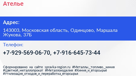 Ателье по адресу 143003, Московская область, Одинцово, Маршала Жукова, 37Б в дальнейшем Организация, размещена в следующих категориях: