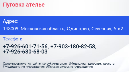 Пуговка, ателье по адресу 143009, Московская область, Одинцово, Северная, 5 к2 в дальнейшем Организация, размещена в следующих категориях: