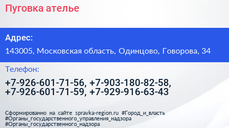 Пуговка, ателье по адресу 143005, Московская область, Одинцово, Говорова, 34 в дальнейшем Организация, размещена в следующих категориях: