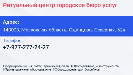 Ритуальный центр, городское бюро услуг по адресу 143003, Московская область, Одинцово, Северная, 62а в дальнейшем Организация, размещена в следующих категориях:
