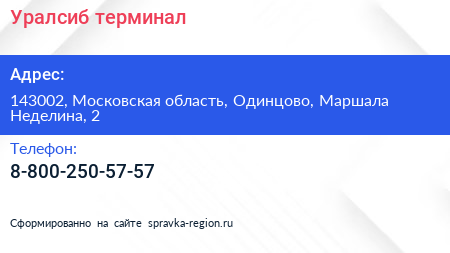 Уралсиб, терминал по адресу 143002, Московская область, Одинцово, Маршала Неделина, 2 в дальнейшем Организация, размещена в следующих категориях: