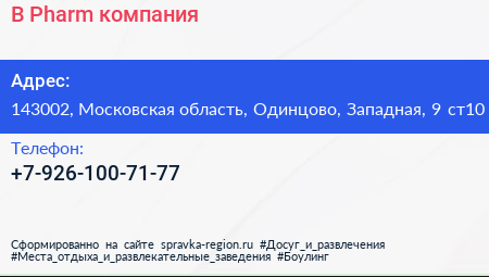 B-Pharm, компания по адресу 143002, Московская область, Одинцово, Западная, 9 ст10 в дальнейшем Организация, размещена в следующих категориях: