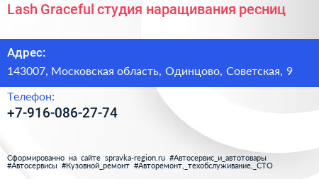 Lash Graceful, студия наращивания ресниц по адресу 143007, Московская область, Одинцово, Советская, 9 в дальнейшем Организация, размещена в следующих категориях: