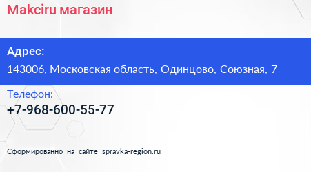 Makciru, магазин по адресу 143006, Московская область, Одинцово, Союзная, 7 в дальнейшем Организация, размещена в следующих категориях: