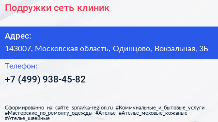 Подружки, сеть клиник по адресу 143007, Московская область, Одинцово, Вокзальная, 3Б в дальнейшем Организация, размещена в следующих категориях: