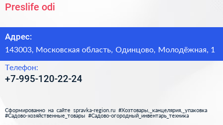 Preslife.odi по адресу 143003, Московская область, Одинцово, Молодёжная, 1 в дальнейшем Организация, размещена в следующих категориях: