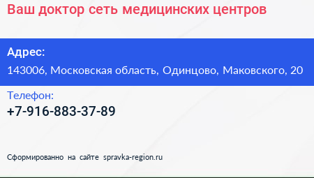 Ваш доктор, сеть медицинских центров по адресу 143006, Московская область, Одинцово, Маковского, 20 в дальнейшем Организация, размещена в следующих категориях: