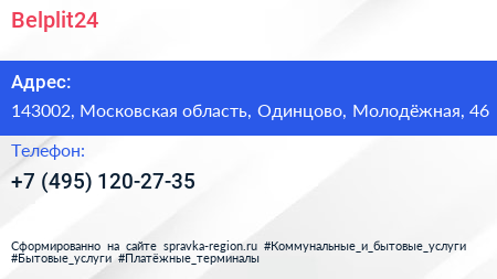 Belplit24 по адресу 143002, Московская область, Одинцово, Молодёжная, 46 в дальнейшем Организация, размещена в следующих категориях: