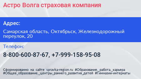 Астро-Волга, страховая компания по адресу Самарская область, Октябрьск, Железнодорожный переулок, 20 в дальнейшем Организация, размещена в следующих категориях: