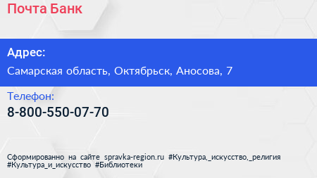Почта Банк по адресу Самарская область, Октябрьск, Аносова, 7 в дальнейшем Организация, размещена в следующих категориях: