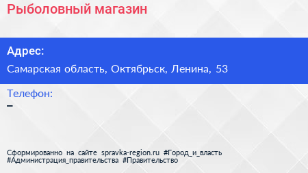 Рыболовный магазин по адресу Самарская область, Октябрьск, Ленина, 53 в дальнейшем Организация, размещена в следующих категориях: