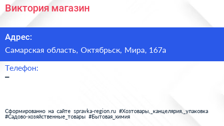 Виктория, магазин по адресу Самарская область, Октябрьск, Мира, 167а в дальнейшем Организация, размещена в следующих категориях: