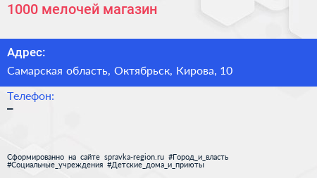 1000 мелочей, магазин по адресу Самарская область, Октябрьск, Кирова, 10 в дальнейшем Организация, размещена в следующих категориях:
