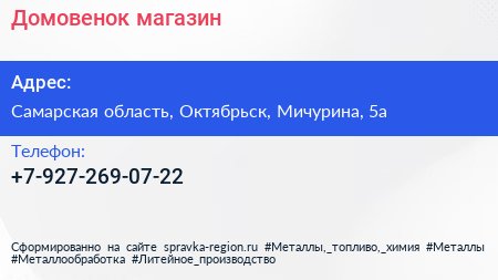 Домовенок, магазин по адресу Самарская область, Октябрьск, Мичурина, 5а в дальнейшем Организация, размещена в следующих категориях: