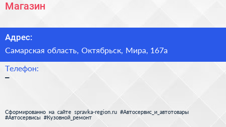 Магазин по адресу Самарская область, Октябрьск, Мира, 167а в дальнейшем Организация, размещена в следующих категориях: