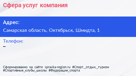 Сфера услуг, компания по адресу Самарская область, Октябрьск, Шмидта, 1 в дальнейшем Организация, размещена в следующих категориях: