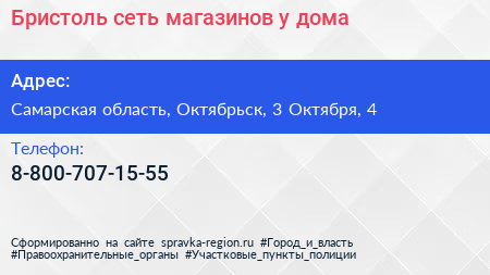 Бристоль, сеть магазинов у дома по адресу Самарская область, Октябрьск, 3 Октября, 4 в дальнейшем Организация, размещена в следующих категориях: