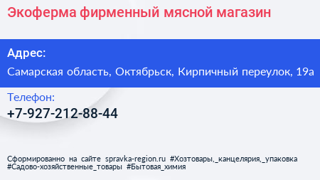Экоферма, фирменный мясной магазин по адресу Самарская область, Октябрьск, Кирпичный переулок, 19а в дальнейшем Организация, размещена в следующих категориях: