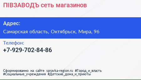 ПIВЗАВОДЪ, сеть магазинов по адресу Самарская область, Октябрьск, Мира, 96 в дальнейшем Организация, размещена в следующих категориях: