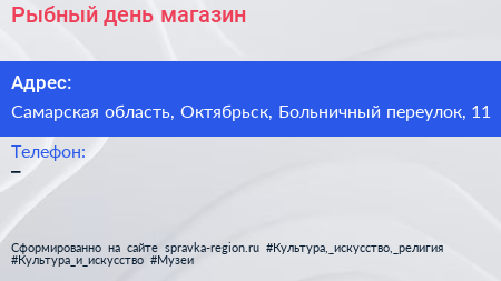 Рыбный день, магазин по адресу Самарская область, Октябрьск, Больничный переулок, 11 в дальнейшем Организация, размещена в следующих категориях: