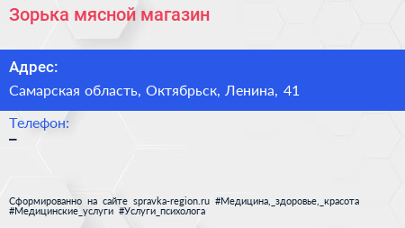 Зорька, мясной магазин по адресу Самарская область, Октябрьск, Ленина, 41 в дальнейшем Организация, размещена в следующих категориях:
