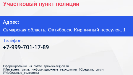 Участковый пункт полиции по адресу Самарская область, Октябрьск, Кирпичный переулок, 1 в дальнейшем Организация, размещена в следующих категориях:
