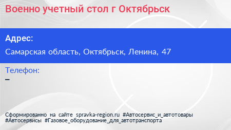 Военно-учетный стол, г. Октябрьск по адресу Самарская область, Октябрьск, Ленина, 47 в дальнейшем Организация, размещена в следующих категориях: