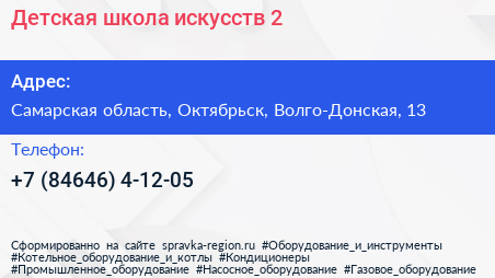 Детская школа искусств №2 по адресу Самарская область, Октябрьск, Волго-Донская, 13 в дальнейшем Организация, размещена в следующих категориях: