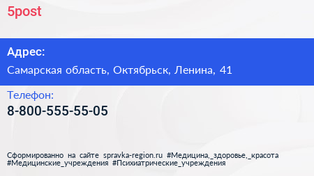 5post по адресу Самарская область, Октябрьск, Ленина, 41 в дальнейшем Организация, размещена в следующих категориях: