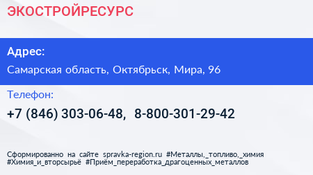 ЭКОСТРОЙРЕСУРС по адресу Самарская область, Октябрьск, Мира, 96 в дальнейшем Организация, размещена в следующих категориях: