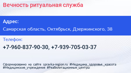 Вечность, ритуальная служба по адресу Самарская область, Октябрьск, Дзержинского, 38 в дальнейшем Организация, размещена в следующих категориях: